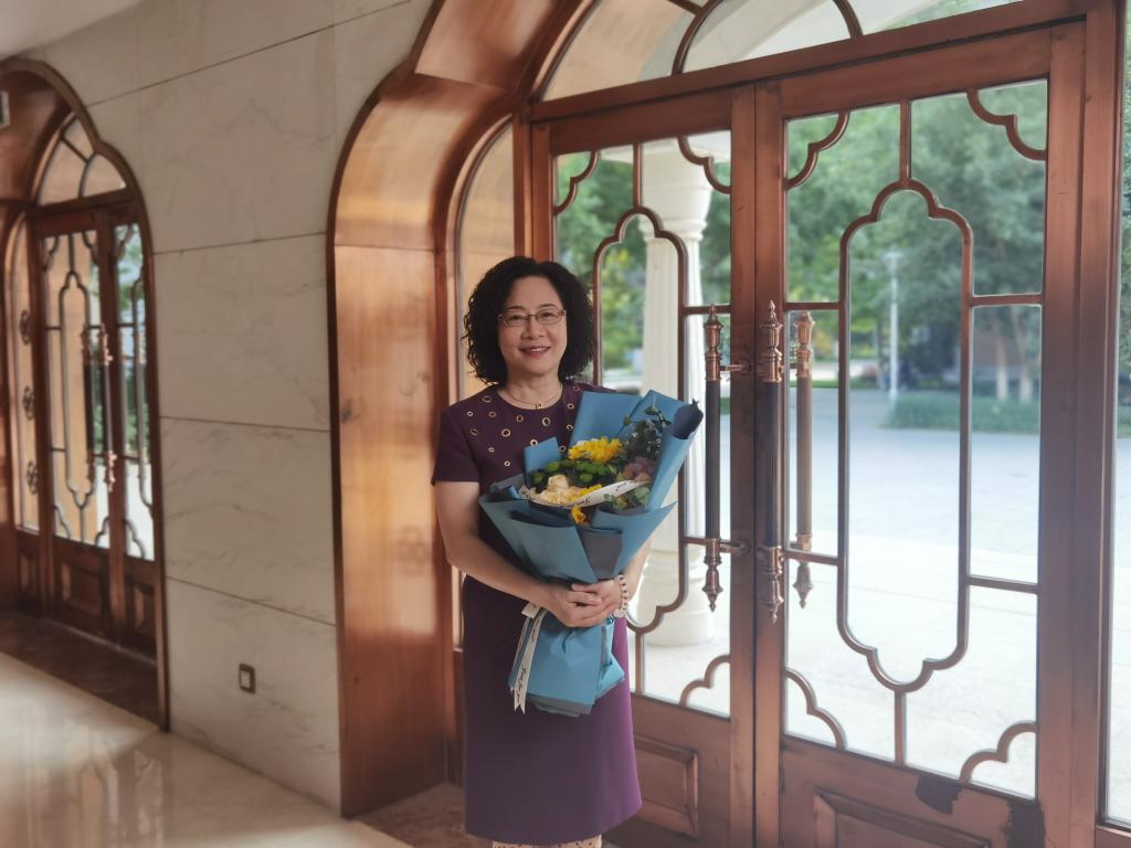 座谈结束后,大家合影留念,学生代表为程慧玲校友献花,常秀鹏书记代表beat365英国官网网站为校友赠送纪念品。