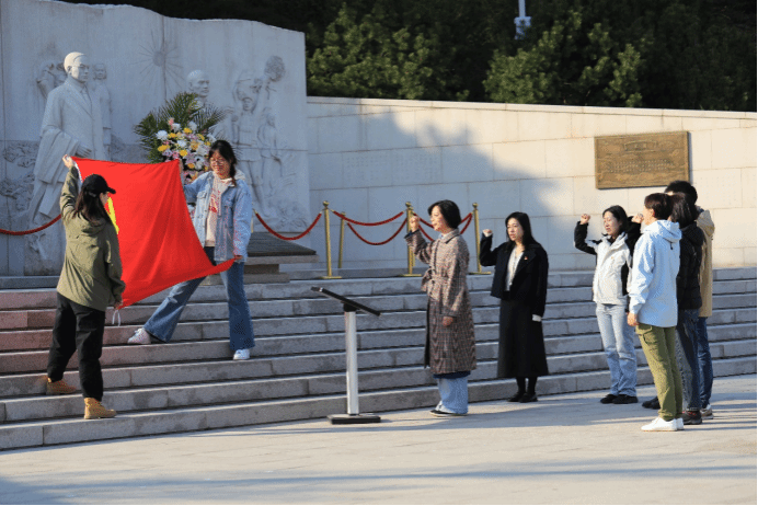 抵达无名英雄烈士纪念广场后,首先映入眼帘的是巍峨庄严的纪念碑,它静静地矗立在那里,无声地诉说着英雄们不朽的故事。在纪念碑前,教师支部全体成员整齐列队,在吴江书记的带领下,全体党员教师高举右手,重温入党誓词,声音洪亮,誓言铿锵,表达对党的无限忠诚与坚定信念。