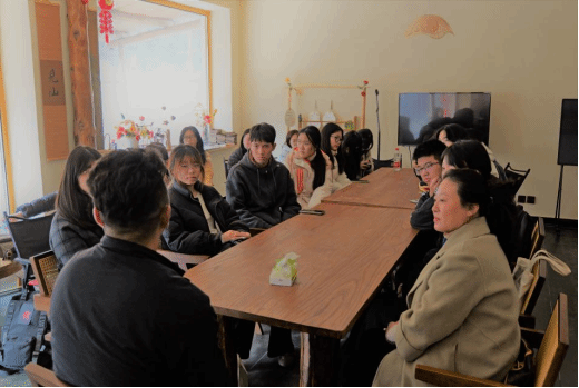 随后王有军书记与党支部师生在村里的农民专业合作社项目——“见山小院”进行亲切座谈。交流中,王书记首先详细介绍了东王庄村的基本情况、发展历程,以及在党建引领下,村庄在基础设施建设、人居环境整治、特色产业培育等方面取得的成效。在交流环节,同学们围绕新媒体运营、乡村振兴等话题踊跃提问,王书记结合个人实践,坦诚分享了利用新媒体平台记录乡村生活、展示乡土文化、吸引外界关注的心得体会,也提到了在内容创作、流量获取等方面遇到的实际挑战。王书记还介绍了村委会与青年“乡野计划”合作,通过盘活闲置资源发展特色民宿的创新路径。
