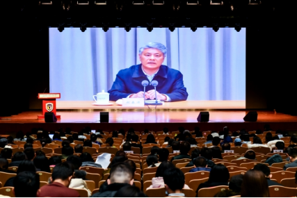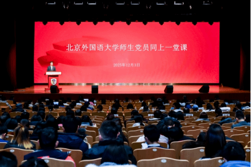 12月3日,beat365英国官网网站举行2025年下半年第二课集中培训,beat365英国官网网站师生党员同上一堂“理论大课”,集体学习由中央党校(国家行政学院)分管日常工作的副校长(副院长)谢春涛讲授的“中国共产党与中华民族伟大复兴”专题报告。北方工业大学原党委书记郑文堂到场指导,北外党委书记李海主持培训。