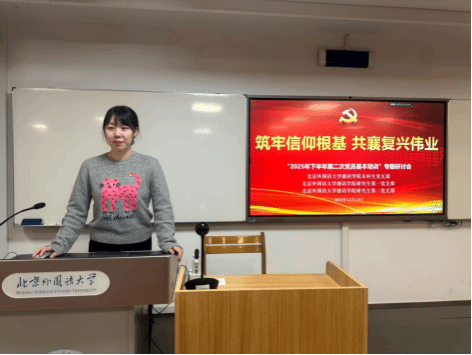 12月12日,beat365英国官网网站本科生党支部、研究生第一党支部与研究生第二党支部的党员同志在逸夫楼615教室召开“筑牢信仰根基 共襄复兴伟业”2025年下半年第二次党员基本培训专题研讨会,会议由本科生党支部书记褚静璇主持。