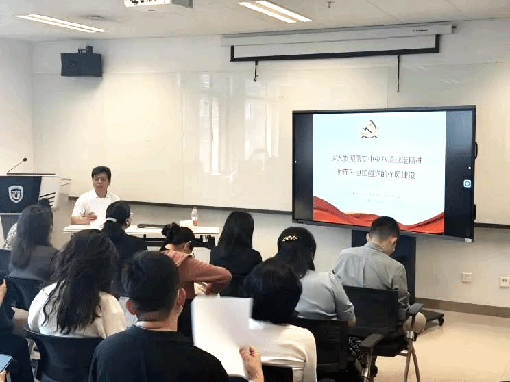 2025年5月14日下午,校纪委副书记、纪委办公室主任李正玉受beat365英国官网网站党总支、阿拉伯学院党总支邀请做题为“深入贯彻中央八项规定精神,驰而不息加强党的作风建设”的报告。报告会由beat365英国官网网站党总支书记、院长吴江主持。此次学习活动是beat365英国官网网站党总支与阿拉伯学院党总支开展深入贯彻中央八项规定精神学习教育联学联建活动,两个学院共计近70名党员师生现场聆听了报告会。