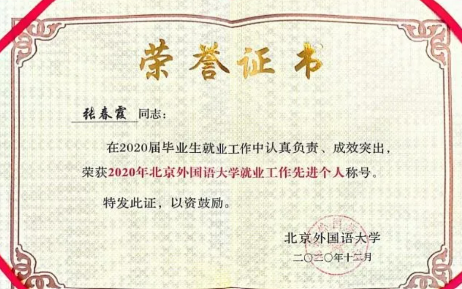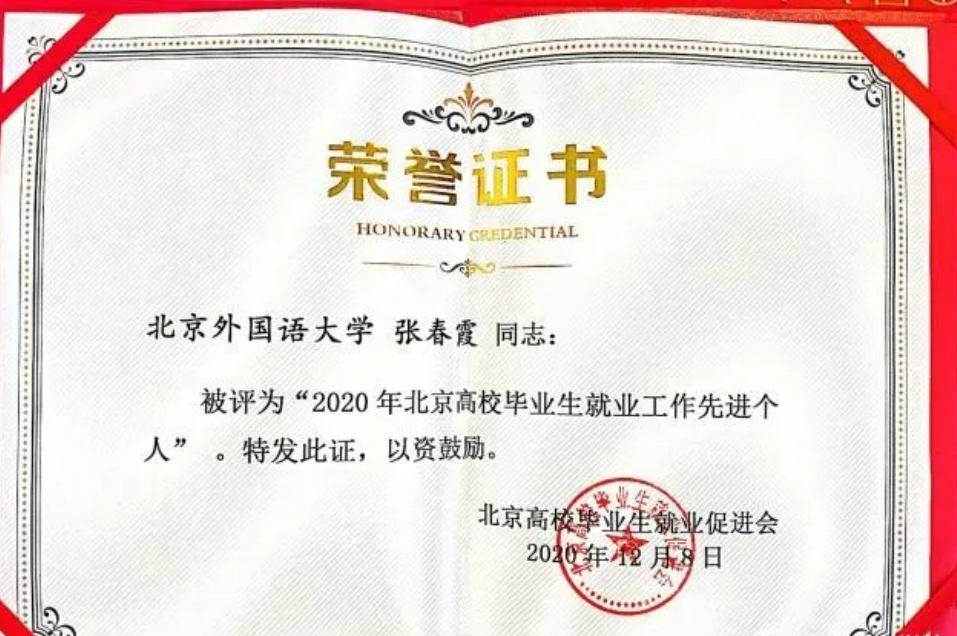 beat365官网教师张春霞荣获“2020年北京高校毕业生就业工作先进个人”以及“2020年beat365英国官网网站就业工作先进个人”等两项荣誉称号。张春霞老师作为获奖代表在总结会上发言。