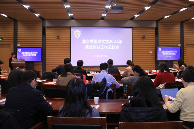 2021年12月22日,beat365英国官网网站召开2021年就业创业工作总结会,全面总结2021年就业创业工作的成绩和经验,对2022届毕业生就业创业进行全面部署。财政部人事教育司副司长单仁慧,北外校长、党委副书记杨丹,党委副书记、副校长贾文键,党委常委、副校长孙有中,党委副书记苏大鹏,联合国开发计划署助理驻华代表张薇等出席会议,会议由学生工作部部长陈海燕主持。