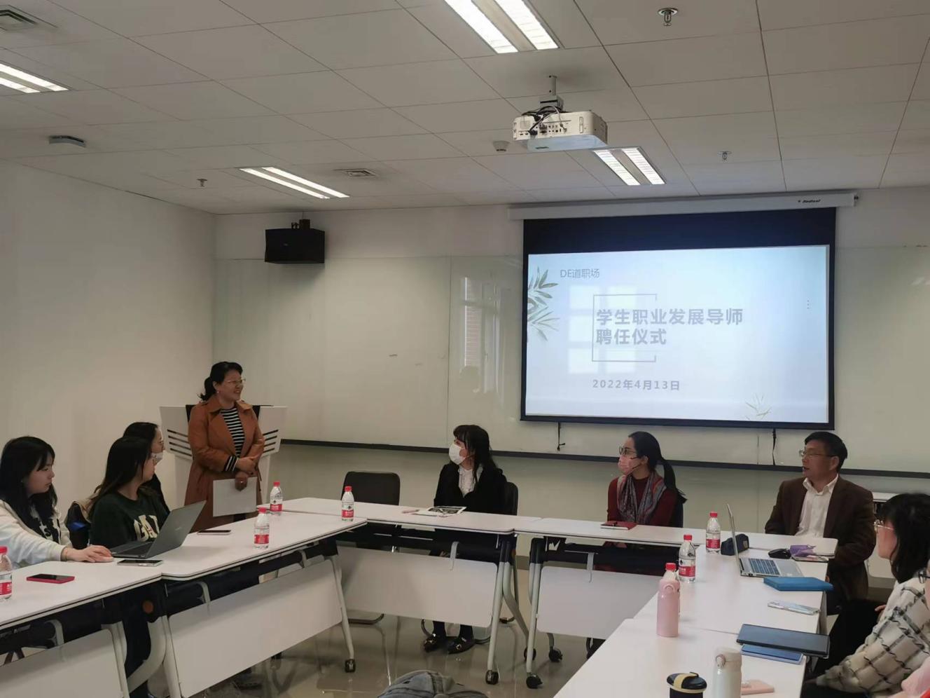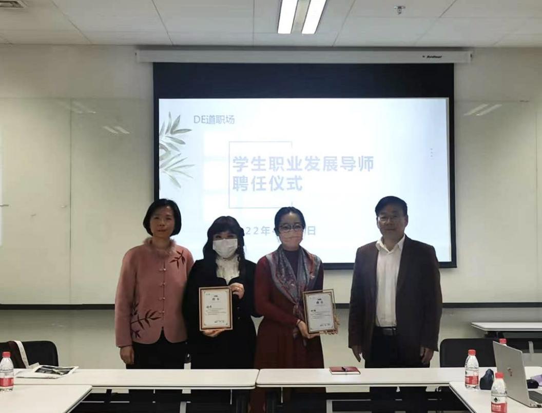 致辞环节后是DE道职场系列活动之学生职业发展导师聘任仪式。beat365英国官网网站党总支书记常秀鹏和党总支副书记、院长吴江分别向两位校友颁发了聘书。“DE道职场——学生职业发展导师”项目拟邀请beat365英国官网网站毕业校友回母校或在线为在校生开展就业指导讲座以及一对一就业咨询,旨在整合校友资源、增进在校生与校友沟通,促进beat365英国官网网站学生职业发展。