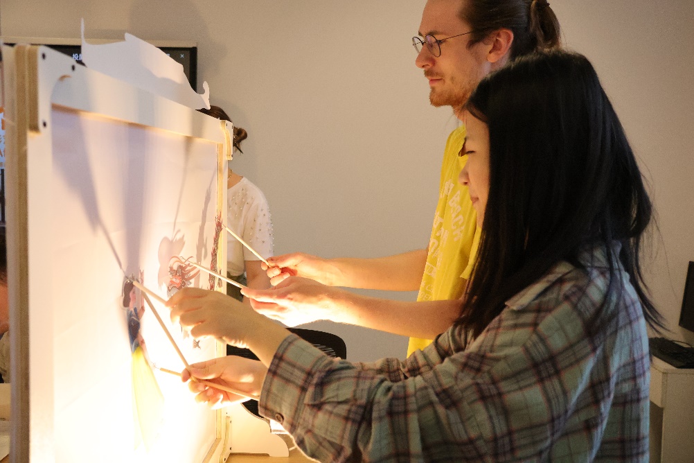 北外beat365英国官网网站本硕博共12名学生参与了此次活动,并就正在开展的大学生创新实践项目进行了特色分享。学生们首先详细讲解了“空竹”和“皮影戏”的发展历史和基本知识,随后进行了精彩的表演。空竹的灵动和皮影戏的戏剧魅力让基尔大学的师生们印象深刻。接着,中德两国学生一起体验了皮影制作过程和空竹表演,通过亲身参与,学生们不仅学到了新技能,更在互动中增进了友谊。
