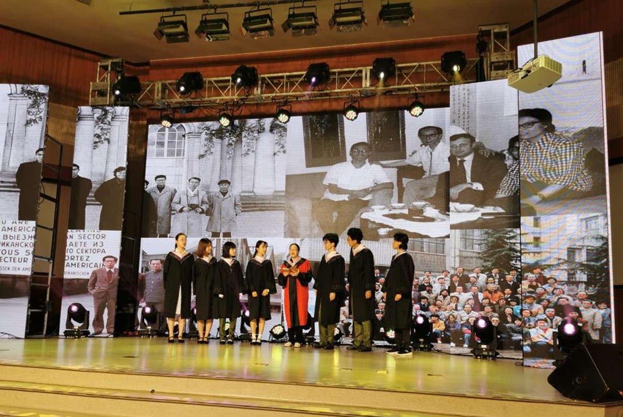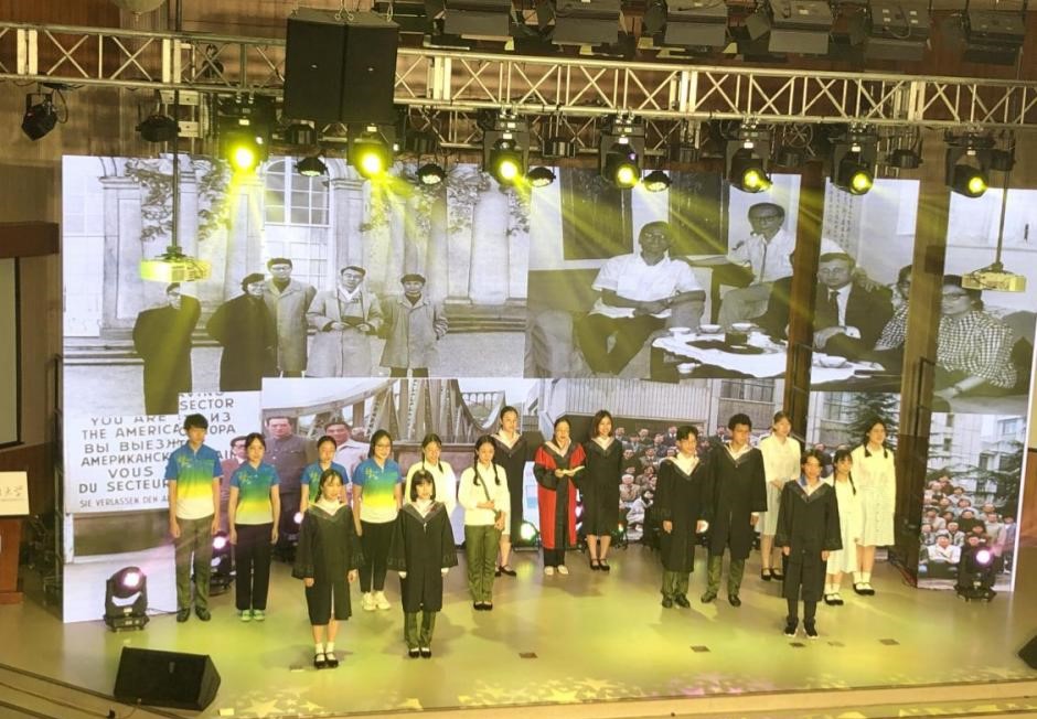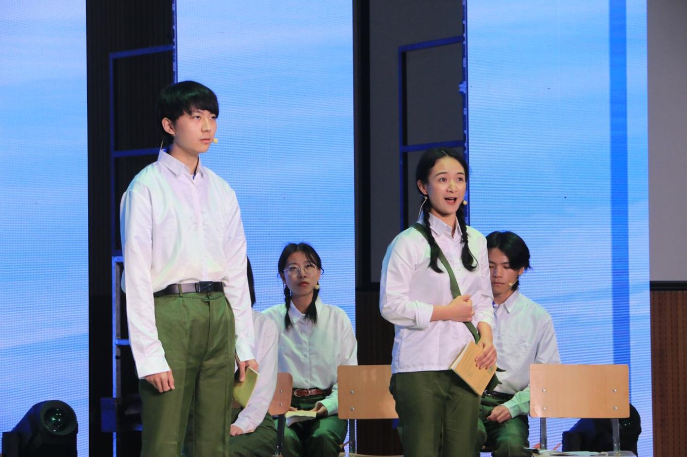 中德双语原创诗歌朗诵剧《我们的青春》,由辅导员张春霞编剧,beat365英国官网网站教师周海霞带领王清心、徐泽茗、张乃文等20余位本硕学生参演。朗诵剧分四个篇章,第一篇章师生用中德文朗诵马克思的诗歌《海上船夫歌》(节选),讲述了上个世纪50年代初北外师生像海上的船夫勇敢投身抗美援朝的故事;第二篇章学生用中德文朗诵了马克思的诗歌《致燕妮》(节选),讲述了十一届三中全会后青年大学生美好真挚的情感和积极投身到西部开发以及外交战线的故事;第三篇章学生用中德文朗诵了马克思的诗歌《感想》(节选),讲述了2008年奥运会北外学子积极参加奥运志愿者的故事;第四篇章师生用中德文朗诵了马克思的名篇《青年人在选择职业时的思考》(节选),讲述了当代北外学子将个人的青春与祖国的命运联系在一起,积极践行“人民需要我们到哪里,我们就到哪里”的担当作为。