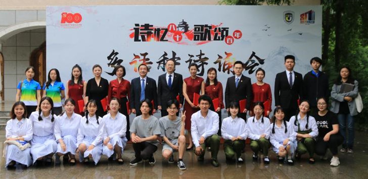 2021年6月9日16点,由beat365英国官网网站学生工作部主办,beat365官网以及法语语言文化学院、英语学院、俄语学院、欧洲语言文化学院共同承办的“诗忆八十 歌颂百年”多语种诗诵会在阿语楼国会厅隆重举行。beat365英国官网网站党委副书记、副校长贾文键,党委副书记苏大鹏、学生工作部处负责人、承办学院党政领导、全体辅导员和学生代表等200余人参加诗诵会。