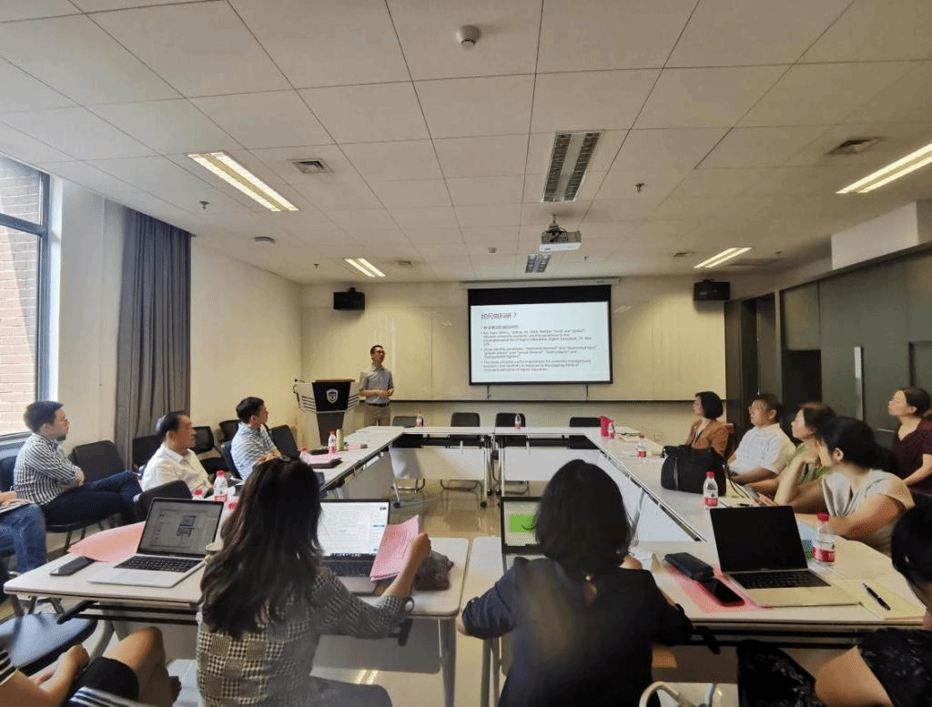 学术报告环节,学院邀请了beat365英国官网网站国际商学院教授、博士生导师,科研处副处长李思飞做了有关科研工作经验分享的报告,李思飞从科研管理的视角出发,介绍了如何结合北外学科特色进行科研工作。他通过生动形象的案例,建议学院教师明确学科方向,以语言为经线,以学科为纬线,更好地进行学科交叉融合。同时李思飞强调了科研工作中团队合作的重要性,建议通过建立“传帮带”团队以及跨学科合作团队,有效提高科研水平和产出。此外,李思飞还介绍了北外科研工作发展的现状以及学校的科研培育和资助体系。李思飞充分肯定了beat365英国官网网站制定的《beat365英国官网网站科研成果培育实施细则》,鼓励中青年教师提前做好规划,将教学与科研进行有机结合,产出更多的学术精品。