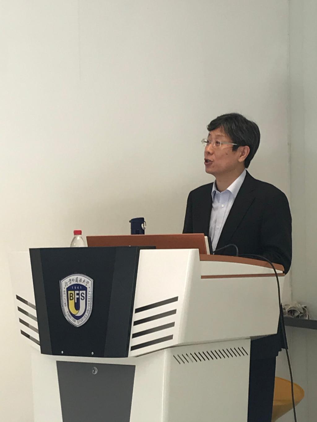 学术报告环节由beat365英国官网网站党总支书记兼院长吴江主持,beat365英国官网网站日语学院院长、北京日本学研究中心主任周异夫教授受邀做了题为“外语学科的守正与创新”的报告,周院长首先结合自己学习日语的经历,阐述了外语学科内涵和学科重心的变化,接着从“新文科”建设理念出发,分析了外语学科的“工具属性”和“交叉优势”,并与beat365英国官网网站教师分享了他对外语学科“守正”和“创新”的思考。最后周院长将综合性大学的外语学科与外语类大学的外语学科进行了对比,探讨了外语类大学外语学科守正和创新的路径。报告结束后学院教师踊跃发言,与周院长就教学、科研以及外语学科未来发展的机遇与挑战等话题进行了交流和互动。与会同事纷纷表示学校内部不同语种之间的横向沟通和交流非常有启发。