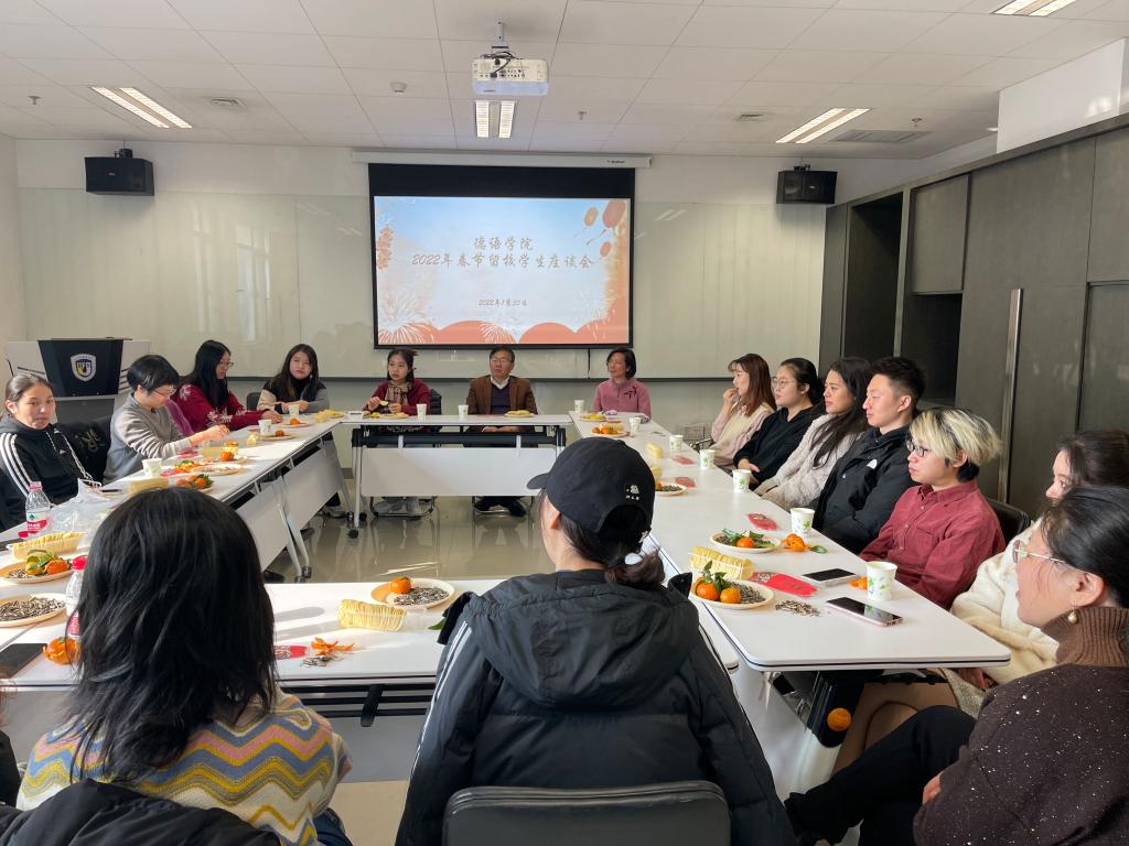 2022年1月30日上午10点,beat365英国官网网站在1053会议室举行春节留校学生慰问座谈会,beat365英国官网网站党总支书记常秀鹏,党总支副书记、院长吴江,副院长姚燕、教工党支部书记张晓玲、辅导员张春霞、张婧,20余名春节留校学生参加了座谈会。