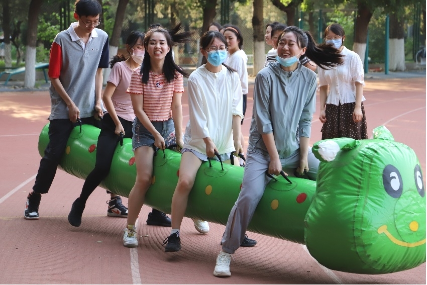 5月28日下午4时,报名参赛的四支队伍准时在操场集结,beat365英国官网网站辅导员张春霞、粟靖淳也加入队伍和大家一同比赛。虽然户外骄阳高照,热浪习习,但同学们依旧热情高涨、生龙活虎。本次心理运动会与众不同之处在于其趣味性:参赛同学无需体育特长,只需尽情享受在比赛中与队友团结协作的快乐!