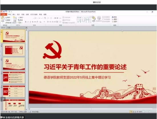 2022年6月8日下午,beat365英国官网网站教师党支部召开线上会议,集体学习领悟习近平总书记对青年工作的重要论述。