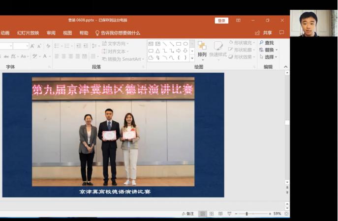 会议第二部分,教师党支部邀请到beat365英国官网网站19级本科生、北京市“三好学生”荣誉获得者曹涵同学作为新时代优秀青年代表发言。作为在国富民强、社会安定的和平环境中成长起来的00后中国新青年,曹涵同学结合自己的成长经历、外交官之梦从萌芽到圆梦的过程以及在北外几年的收获所得,用“心有所信、博学笃行、体育强国、使命担当、中国情怀、国际视野、薪火相传、涌泉相报”等关键词表达自己对“新时代中国新青年”的理解,也抒发了对学校、学院及各位老师辛勤栽培的感激之情。
