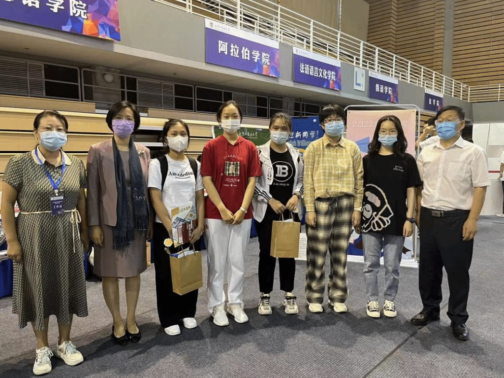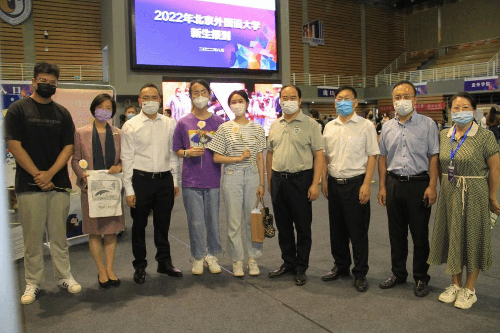校党委书记王定华,党委副书记、校长杨丹、党委常委、副校长贾德忠来到beat365英国官网网站新生报到处指导工作,beat365英国官网网站党总支书记常秀鹏,党总支副书记、院长吴江和辅导员张春霞、张婧、黄唯城给校领导展示了迎新处的布置与新生礼品,之后校领导与大家一起亲切合影。