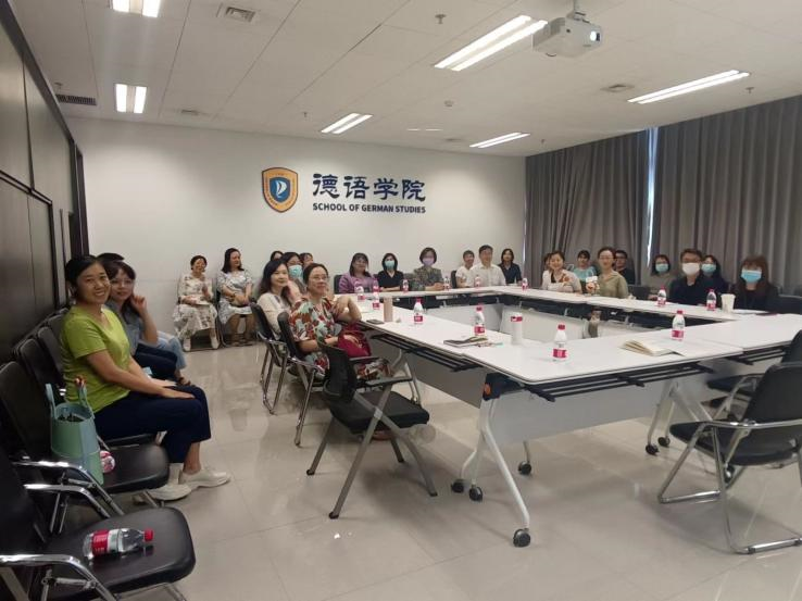 党总支副书记、院长吴江重点传达了杨丹校长在秋季学期工作部署会上做的《善谋国之大事,开创北外国际传播新格局》专题报告精神,对暑假期间组织全国性学生赛事、全国性高端学术论坛以及维护多语网站建设的同事们表达了衷心的感谢。面对复杂的疫情形势,提出做细做实教学安排和应急预案的要求,对开课、上课情况“摸排到课,统计到人”,坚持线上线下教学有机融合,根据疫情发展情况动态调整,确保线下教学安全和线上教学质量;强调以《理解当代中国》系列教材的使用为契机,持续推进德语专业课程思政工作;本学期还将有序推进“101工程”通用语种卓越计划,推进德国研究中心、奥地利研究中心以及中德人文交流研究中心的运行,继续培育教学科研项目,持续提升学院教学科研水平。副院长姚燕对暑假期间开展的工作做了梳理,围绕新版硕博培养方案的修订、研究生培养管理、学生出国以及外事工作等做了介绍,并对本学期研究生的教学教务工作做了安排。科研秘书寇蔻给全体教师细致解读了学校新近实施的科研绩效评价与管理办法。