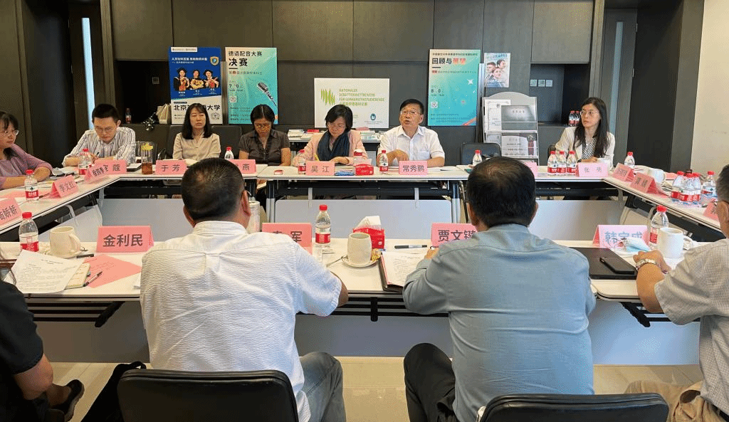 2022年9月22日下午,校学术委员会主任袁军,校学术委员会委员贾文键、韩宝成、金利民、常福良,综合改革办公室、“双一流”建设办公室主任汤哲远,“双一流”建设办公室副主任潘亮,教务处副处长郭斌,国际处副处长龚婧,人事处张䶮等一行到beat365英国官网网站调研“101工程”通用语种卓越计划工作情况。beat365英国官网网站党总支成员、党政联席会成员、学术委员会成员及教师代表参加会议。