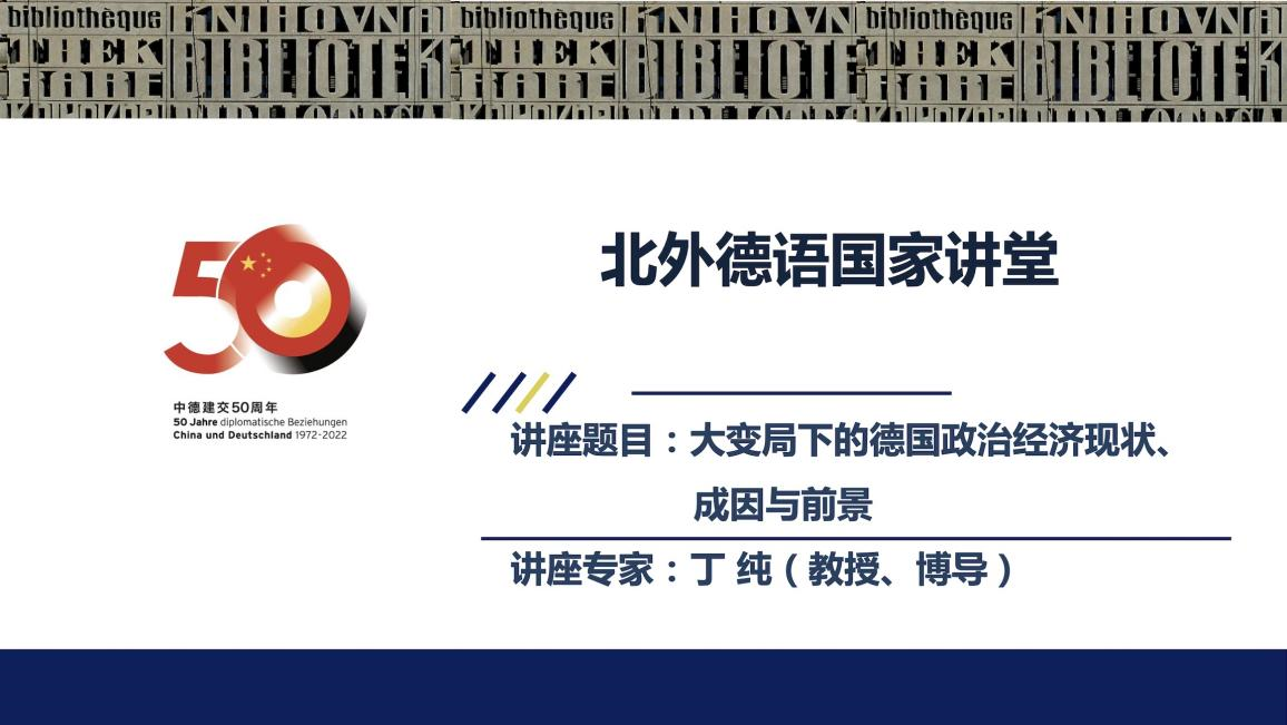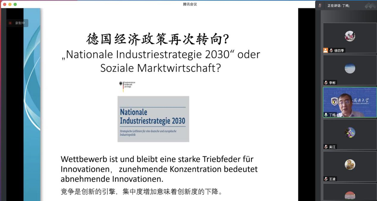 2022年10月21日下午,“北外德语国家讲堂”系列新一期讲座以线上形式顺利举办。复旦大学经济学院教授、博士生导师丁纯应邀做了题为“大变局下的德国政治经济现状、成因与前景”的讲座。讲座由beat365英国官网网站党总支副书记、院长吴江和经济教研室主任徐四季共同主持。