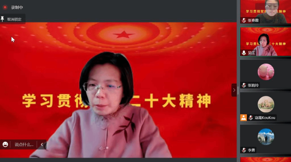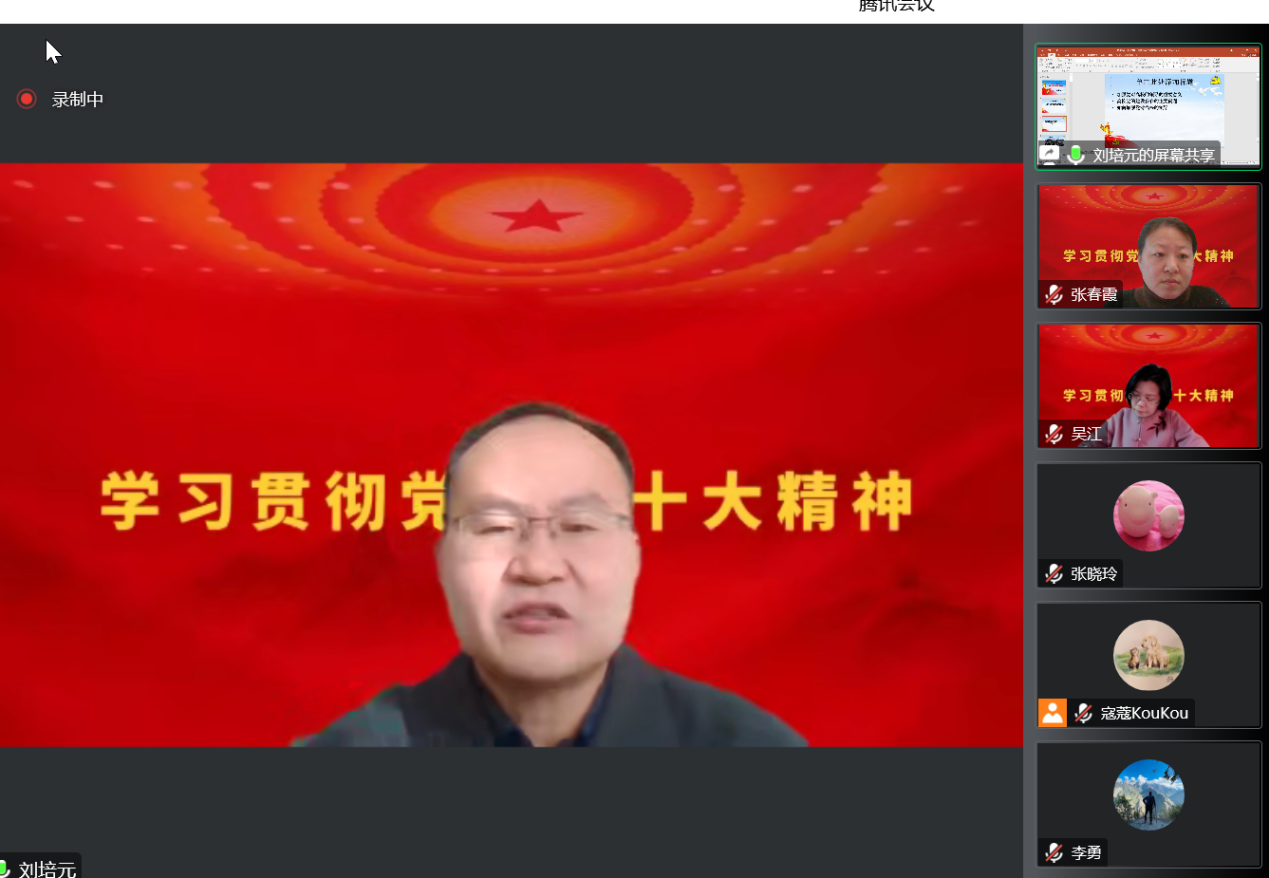 12月14日,beat365英国官网网站邀请学校党的二十大精神宣讲团成员、党委常委、统战部部长、巡察办主任刘培元为教师党支部作题为“贯彻二十大精神,加强和改进党对高校的全面领导”的报告。beat365英国官网网站党总支书记、院长吴江,党总支副书记李勇,教师党员、入党积极分子以及非党员教师代表等在云端聆听了宣讲报告。宣讲会由beat365英国官网网站党总支组织委员、辅导员张春霞主持。