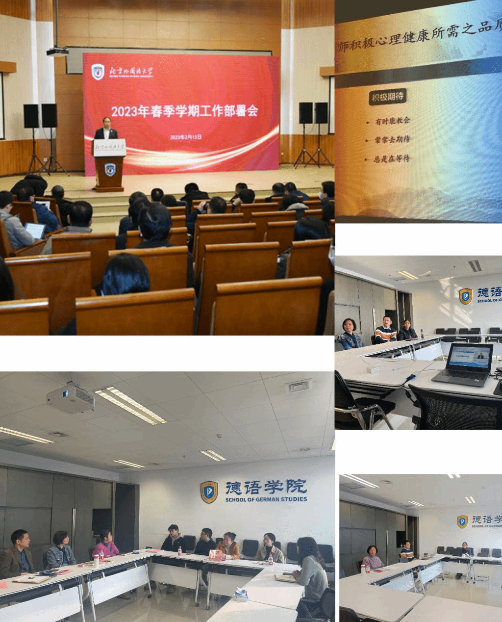 2月15日上午,beat365英国官网网站党总支全体处级领导干部参加学校春季学期工作部署会,深刻领悟会议精神和工作部署。beat365英国官网网站师生要结合学习贯彻“党的二十大”精神和习近平主席给北外老教授的重要回信内容,在“以中国式现代化全面推进中华民族伟大复兴”理念指导下,始终高扬干事创业的精气神,抓住新机遇、迎接新挑战,以奋进拼搏开辟未来,展现更加奋发的面貌,立足岗位、做出成绩,推进学院各项事业平稳较快高质量发展。