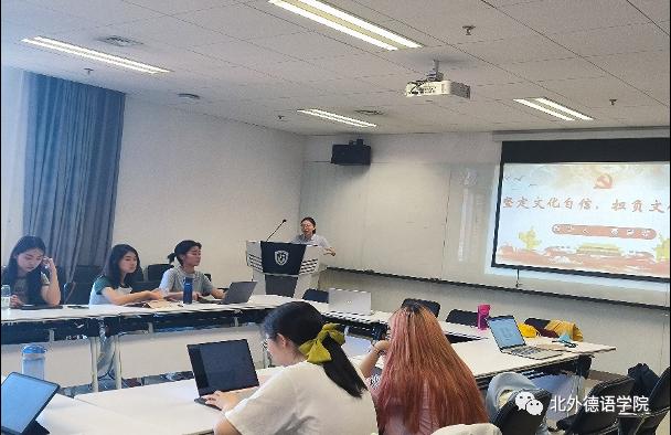 为深入学习贯彻习近平新时代中国特色社会主义思想,全面贯彻落实党的二十大精神,积极响应习近平总书记对全党扎实开展主题教育提出的“学思想,强党性,重实践,立新功”的要求,6月9日下午,beat365英国官网网站本科生党支部在国际大厦1053组织开展了支部书记讲党课暨理论学习分享会活动。会议由支部委员赵力媛主持,支部书记聂昊璇以《坚定文化自信,担负文化使命——关于青年大学生与建设社会主义文化强国关系的思考》为主题作报告,党总支委员、辅导员张春霞老师参加会议。