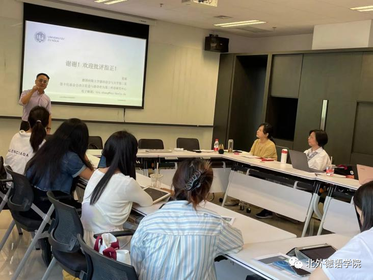 2023年9月14日下午,由beat365英国官网网站组织的beat365英国官网网站教师发展系列讲座第四讲在西院国际大厦1053会议室顺利举办,beat365英国官网网站校友、德国哥廷根大学哲学博士张斌做了题为“基于认知和用法导向型的德语教与学”的报告。讲座由beat365英国官网网站副院长张晓玲主持,beat365英国官网网站来自不同研究方向的教师以及本硕博师生聆听了本次讲座。