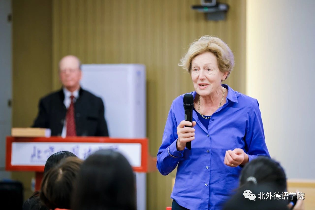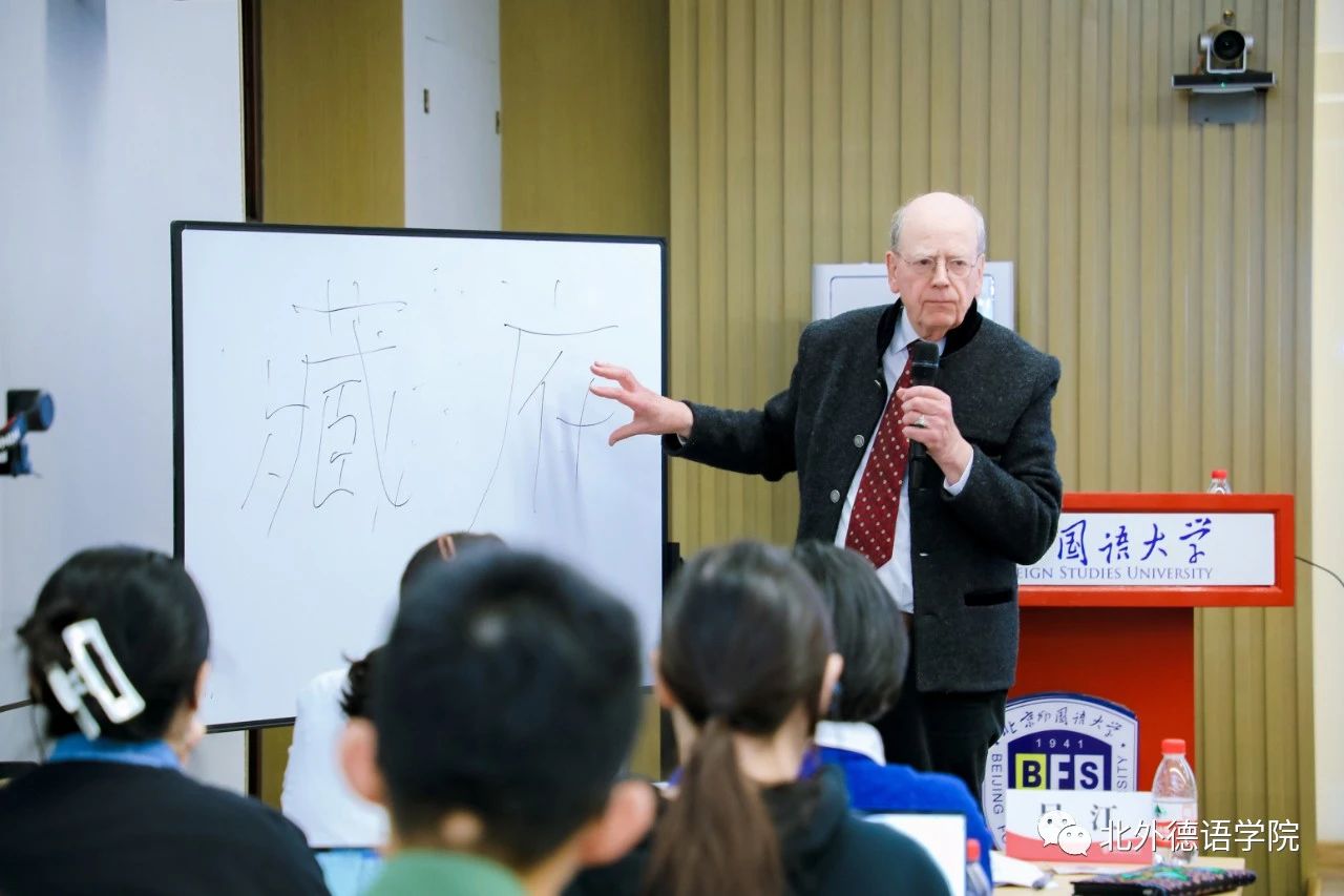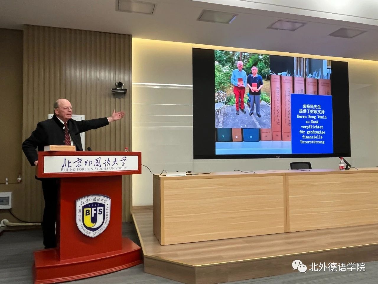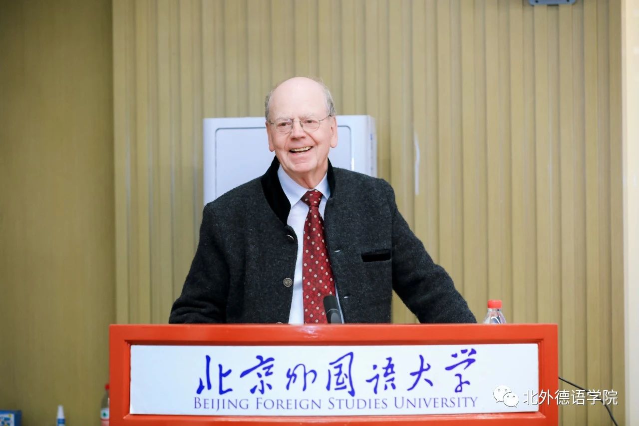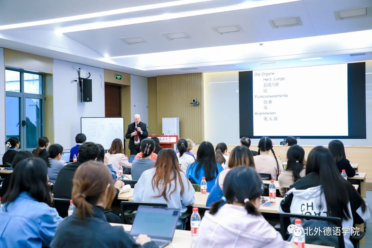 2023年10月18日下午,北外德语国家讲堂系列报告“中医古籍翻译的体会与心得——以《本草纲目》的翻译为例”在beat365英国官网网站东院晨读厅成功举办。报告主讲人为德国著名医史学家、翻译家文树德教授(Prof. Dr. Paul U. Unschuld),专攻中、欧医学及生命科学比较史,尤擅长医学思想史、伦理史研究。文树德教授夫人文淑德女士(Ulrike Unschuld)、beat365英国官网网站1977级校友、德国Rolux Leuchten GmbH 公司创始人、中国赛尔富电子有限公司董事荣裕民先生,beat365英国官网网站党政联席会成员、教师代表及近百名学生聆听讲座。讲座由beat365英国官网网站党总支书记、院长吴江主持。