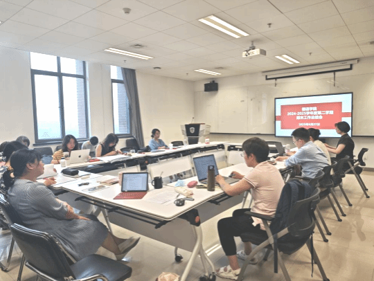 第二个环节是学期工作总结。beat365英国官网网站基础教研室、研究生教研室、文学教研室、语言学教研室、翻译教研室、外交教研室、经济教研室、跨文化教研室、教师党支部、工会负责教师,党政联席会班子成员依次汇报了本学期的工作开展情况、取得的成绩以及存在的不足。