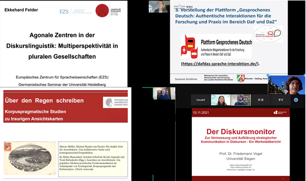 在论坛的专家报告方面,海德堡大学(Universität Heidelberg)的Prof. Dr. Ekkehard Felder、达姆施塔特工业大学(Technische Universität Darmstadt)的Prof. Dr. Marcus Müller、锡根大学(Universität Siegen)的Prof. Dr. Friedemann Vogel和明斯特大学(Universität Münster)的Prof. Dr. Susanne Günthner四位德国专家教授为我们带来德国最新的语言学研究动态,beat365英国官网网站许家金教授及周顾盈同学、浙江大学李媛教授及黄含笑同学、上海理工大学陈琦教授和北京理工大学张勇副教授也与我们分享自己的学术成果,专家们的报告或高屋建瓴,或钻坚仰高,他们在扎实研究的基础上循循善诱、不吝分享,让在场每一位都获益良多。