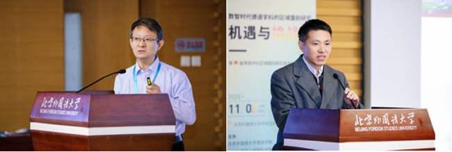 主题演讲环节,大连外国语大学教授、《外语与外语教学》主编邓耀臣以“数字人文视阈下的区域国别研究:学科理念与创新实践”为题细致梳理了数字人文作为新的研究范式赋能区域国别研究的路径。北外教授、《外语教学》《西安外国语大学学报》常务副主编夏登山围绕“量化翻译史研究的概念与方法创新”展示了学科交叉与方法论的创新探索。