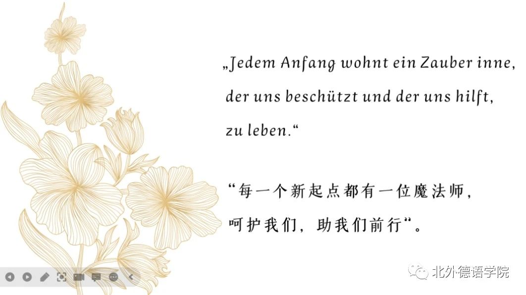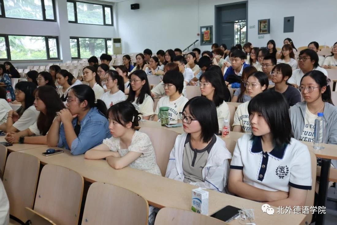 徐四季、李婧和陆娇娇作为教研室主任代表发言,勉励新生勇敢做自己,从北外出发,走向德语国家,在中欧交流的大舞台贡献自己的力量,祝福新生在北外沐浴四季阳光,播撒梦想的种子,合理规划好时间,充分培养兴趣与才干,不负韶华,静待花开;葛囡囡、史良作为班主任代表发言,鼓励新生寻找互帮互助的朋友,结识志同道合的伙伴,在模仿和超越榜样的过程中塑造出独特的自我;洪堃绿、武迪作为青年教师代表发言,祝福新生在北外beat365英国官网网站度过充实美好的多彩时光,学有所成,开启行走世界的人生新篇章!包葛耿、邱袁炜代表学院行政工作人员发言,希望新生在北外的日子过得开心,每天进步一点点;辅导员张春霞、张婧、黄唯城勉励新生珍惜青春年华,勇攀学业高峰,敢于行走世界,秉承红色基因,成为又红又专又雅的北外德语人,承担起中华民族伟大复兴、构建人类命运共同体的重任。