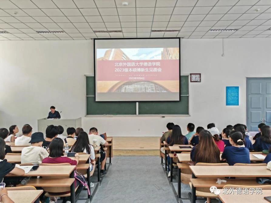 之后,学院党总支以及党政联席会成员先后发言。党总支成员、教学秘书于芳鼓励新生树立新的目标,努力实现梦想;党总支委员、副院长张晓玲、寇蔻勉励新生积极参与学院丰富多彩的各项活动,通过学习德语遇到更好的自己,认识更大的世界,用德语成就梦想,用梦想创造未来!党总支常务副书记李勇引用抗大校训“团结、紧张、严肃、活泼”,希望新生在大学宿舍生活中养成包容差异的生活习惯,搞好团结;在学院和学校的各种集体活动中,在各项校内外竞赛中,团结一致,共创佳绩。保持德语人严谨、认真和细致的好传统作风,勇创新、善突破。保持持之以恒、坚持阅读等良好的微习惯,遇见最好的自己。党总支书记、院长吴江借用汉字“熵”的由来以及管理学提出的实现熵减的三个路径,结合北外beat365英国官网网站的发展史,勉励2023级本硕博新生保持开放的心态,学会与不同的学科和方向实现“能量交换”,敢于尝试创新远离稳态,秉持“兼容并蓄 博学笃行”的北外校训,开启在北外的晨读和暮思!