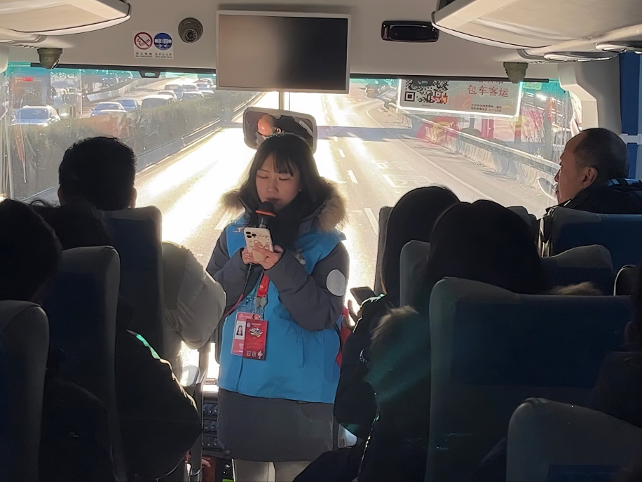 第一天,我作为负责远端集结的志愿者,负责带队,从北京中国国际展览中心(朝阳馆)前往北京中国国际展览中心(顺义馆),我负责一辆中巴带队集结,所以车上乘客不算多。能在车上念出介绍词,保障参会嘉宾顺利抵达展馆对我而言是难忘回忆。抵达以后,我负责保障嘉宾进入场馆的带队工作。