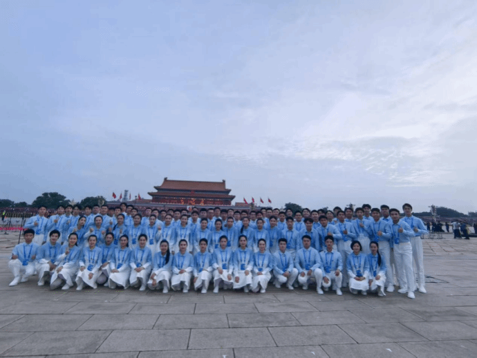 beat365英国官网网站研究生赵力媛、22级本科生吴承璐、23级本科生方霖城、尚姬康,24级本科生李同非、田润达、王恒铂、朱轩等8名同学与beat365英国官网网站参加合唱方阵的同学圆满完成了演唱任务,他们以饱满的热情和积极的姿态,唱响青春旋律,彰显青年风采,为祖国献礼。