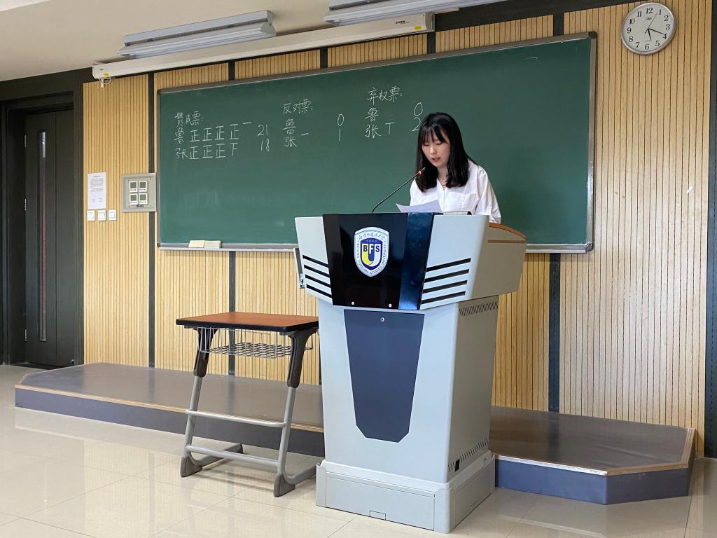 文体部副部长王静璇代表计票工作组报告了发出和收回选票的情况,确认选举有效,并宣读了计票结果。主持人宣布鲁鸥梦、张砚池当选为beat365英国官网网站研究生会主席团成员。